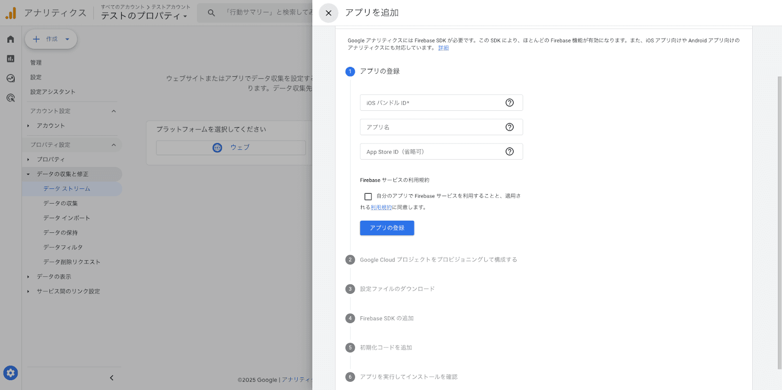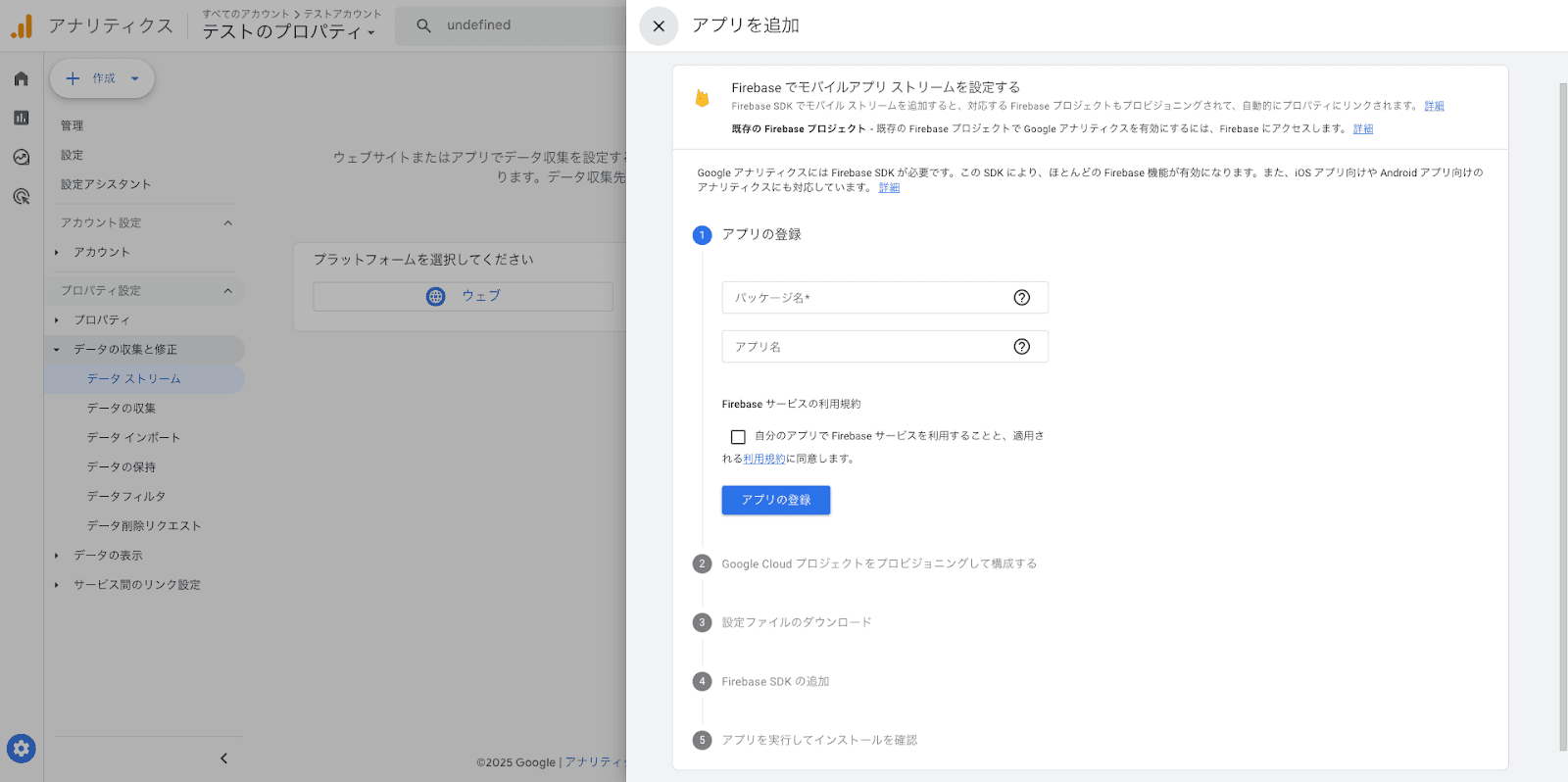 次に、以下の画面よりデータを収集・分析したいWebサイトやアプリを登録します。