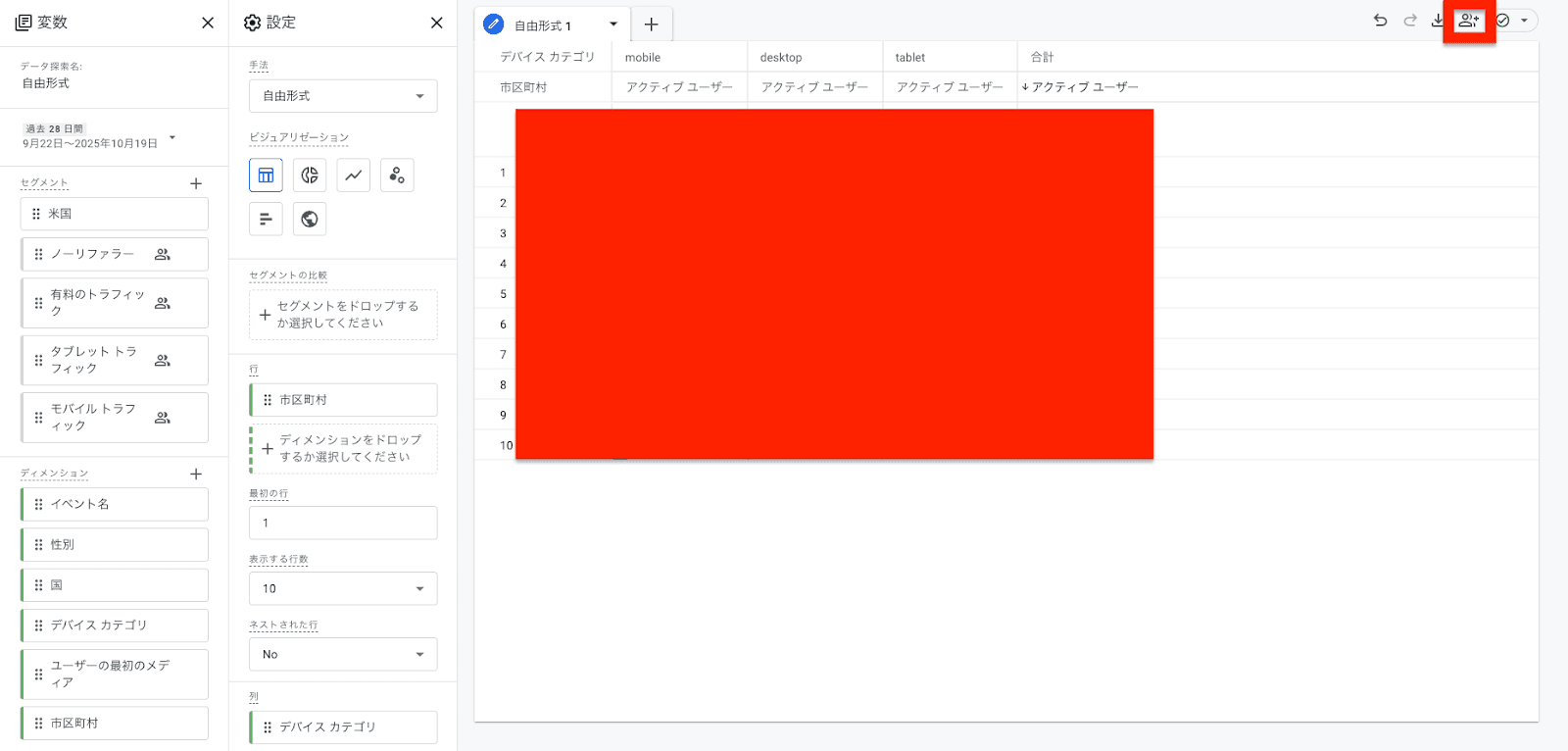 アナリスト | 作成したデータ探索をプロパティの他のユーザーと共有できる権限です。 ※「閲覧者」の権限を含む。 |