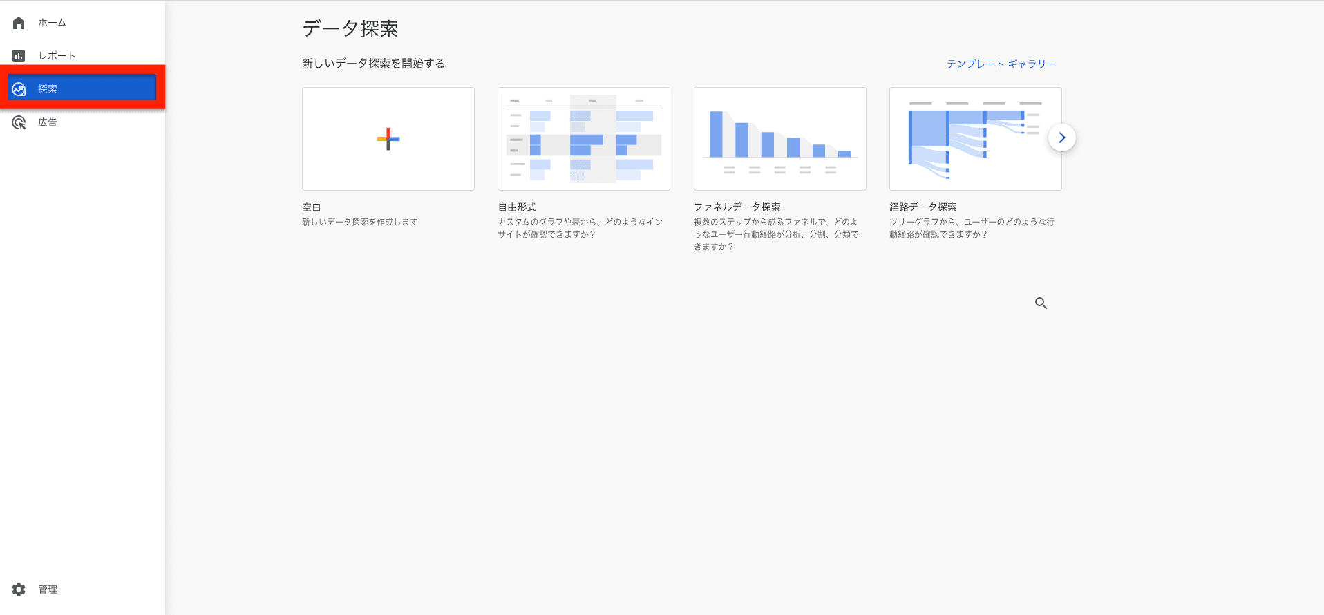 探索では、上記のレポートよりさらに細かい情報を分析できます。例えば「ファネルデータ探索」であれば、ユーザーがサイト内でコンバージョンに到達するまでのルートを把握可能です。