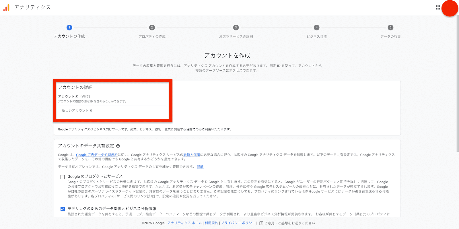 Googleアカウントを持っていない場合は、まず「Googleアカウントのログインページ」より、新規作成してください。最初に「個人用」「仕事/ビジネス用」を選びますが、どちらで作成してもGA4の機能は変わりません。
