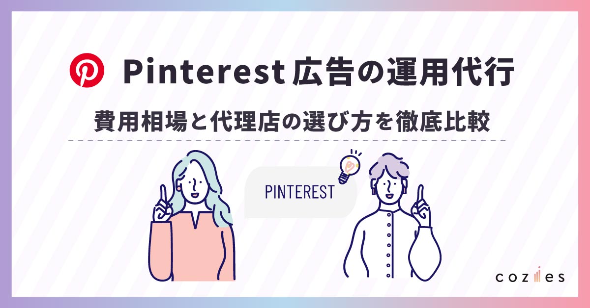 以上のポイントも踏まえつつ、具体的におすすめの広告運用代理店を「広告運用代行とは?利用のメリット、依頼できる業務、費用対効果の高め方」で15社、ピックアップしています。Pinterest広告だけでなく幅広いWeb広告の運用に対応しているため、ぜひ参考にしてください。